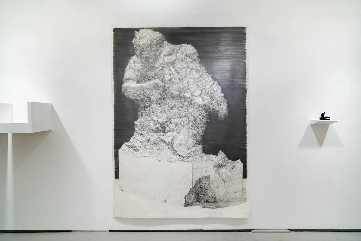 Ghost Stories presents Paris’ and Shetabi’s investigations into the inexplicable, the ghostly, and the ominous. Their works access viewers’ experiences of the familiar, transforming it into a haunting encounter. Norm Paris’ Monuments series of large-scale graphite drawings and plaster sculptures show the material and psychological making and unmaking of his subjects in ways which look to the past for glimpses into the future. Mark Shetabi’s sculptures based on movie theatres and hotel lobbies evoke a sense of a space that feels both distant and intimate as one discovers their eerie charms from a very close range. The play in both bodies of work between monumental and miniscule scale flips our expectations of things both epic and intimate.